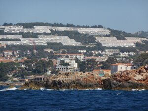 En approchant du port, on passe devant l'île de Bendor qui appartient comme les Embiez à Paul Ricard et a été consacrée aux artistes.